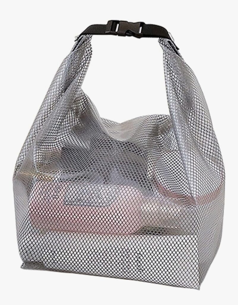 【1】浴室への持ち込みもスマート!「自立型メッシュサウナポーチ」