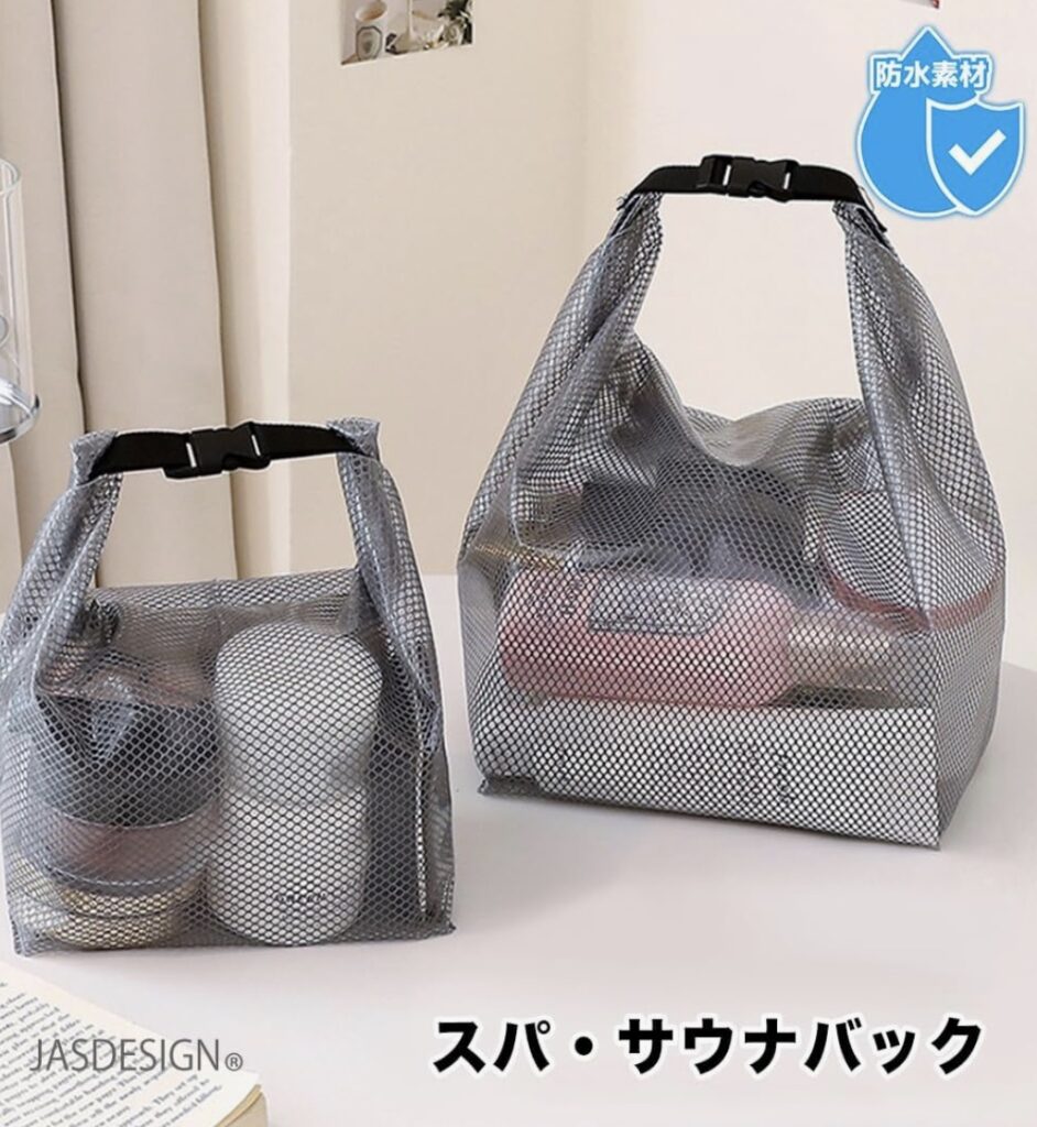 最大のメリットは、**「濡れたまま浴室内に持ち込めて、そのまま放置できる」**こと。底面がメッシュやビニールで自立するタイプを選べば、洗い場の棚に置いても底がヌメらず衛生的です。サウナハットや耳栓、小分けにしたシャンプーなどを一括管理できるため、「あれ、どこに置いたっけ?」というタイムロスがなくなります。通気性が抜群なので、帰宅時はそのままバッグに入れても蒸れにくく、サウナーにとっての「移動基地」として欠かせない存在になります。