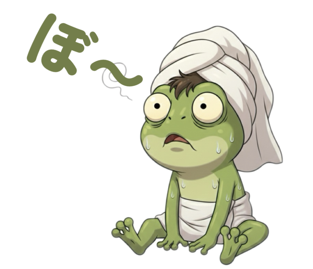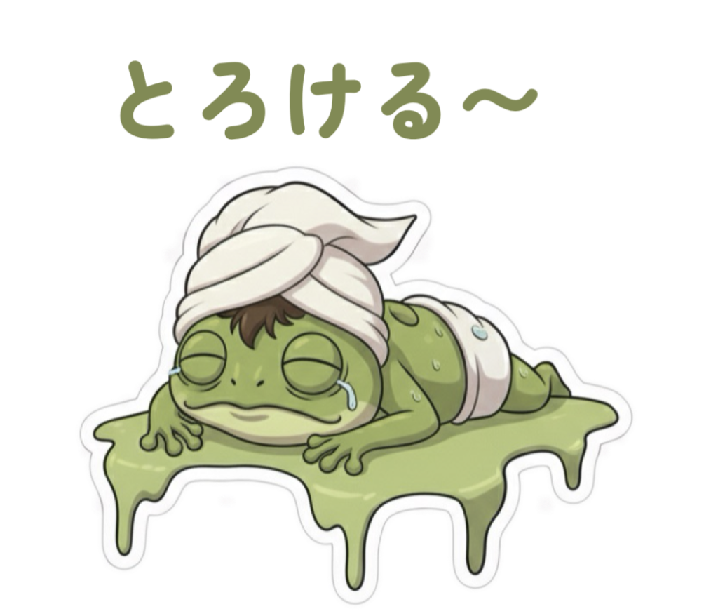 お風呂上がりのポカポカした状態で、心も体も溶けていくあの感覚。サウナ好きの方なら「ととのった」瞬間の報告にも最適です。
