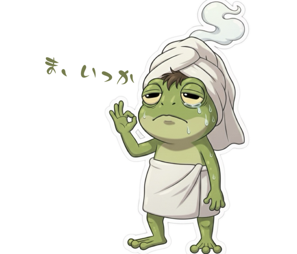 「もう何もしたくない」「ぼ〜っとしていたい」という本音を、可愛いカエルの姿を借りて表現することで、相手とのコミュニケーションに柔らかな空気をもたらしてくれます。