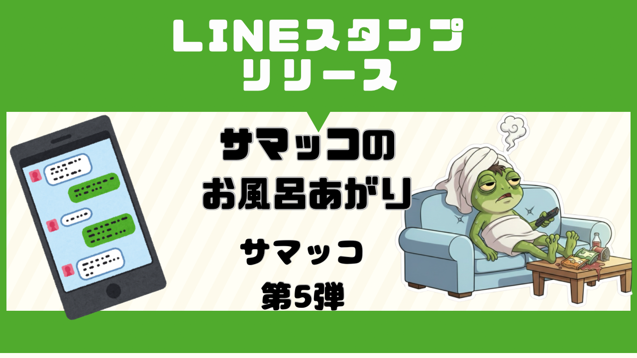 限界突破のカエル「サマッコ」第5弾!お風呂上がりの“無”を届ける、究極の脱力系スタンプ