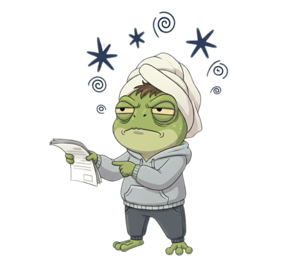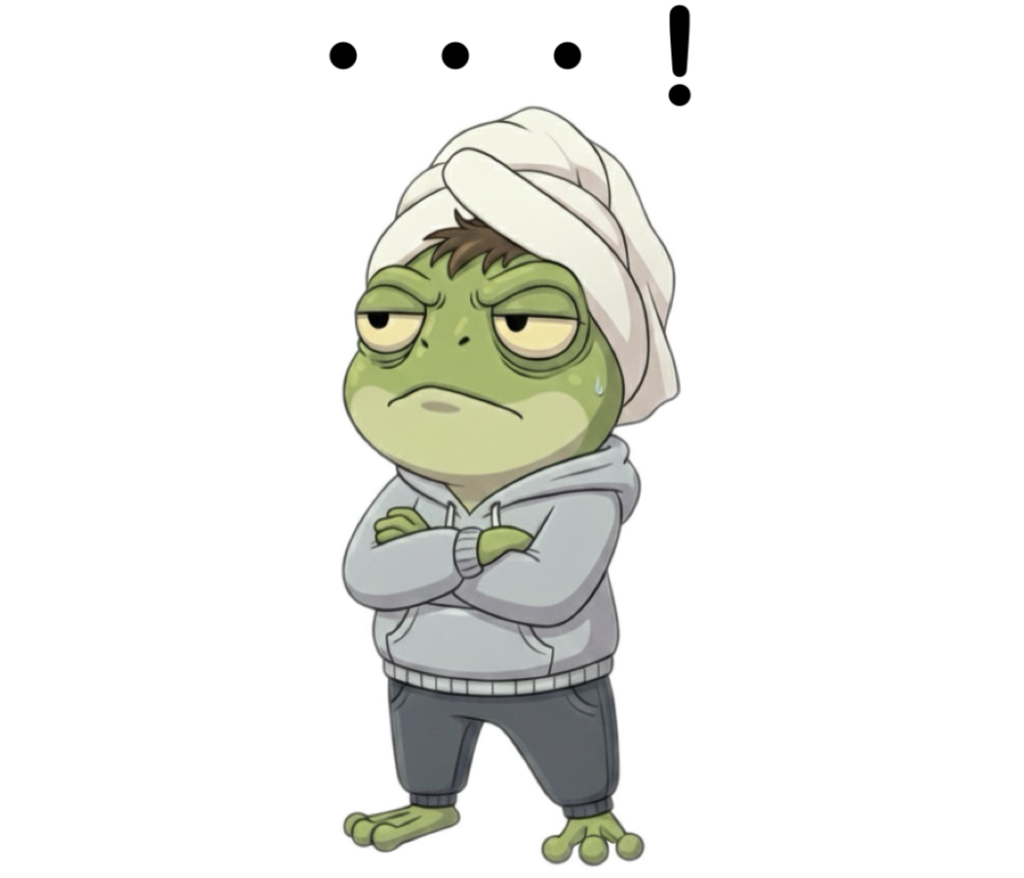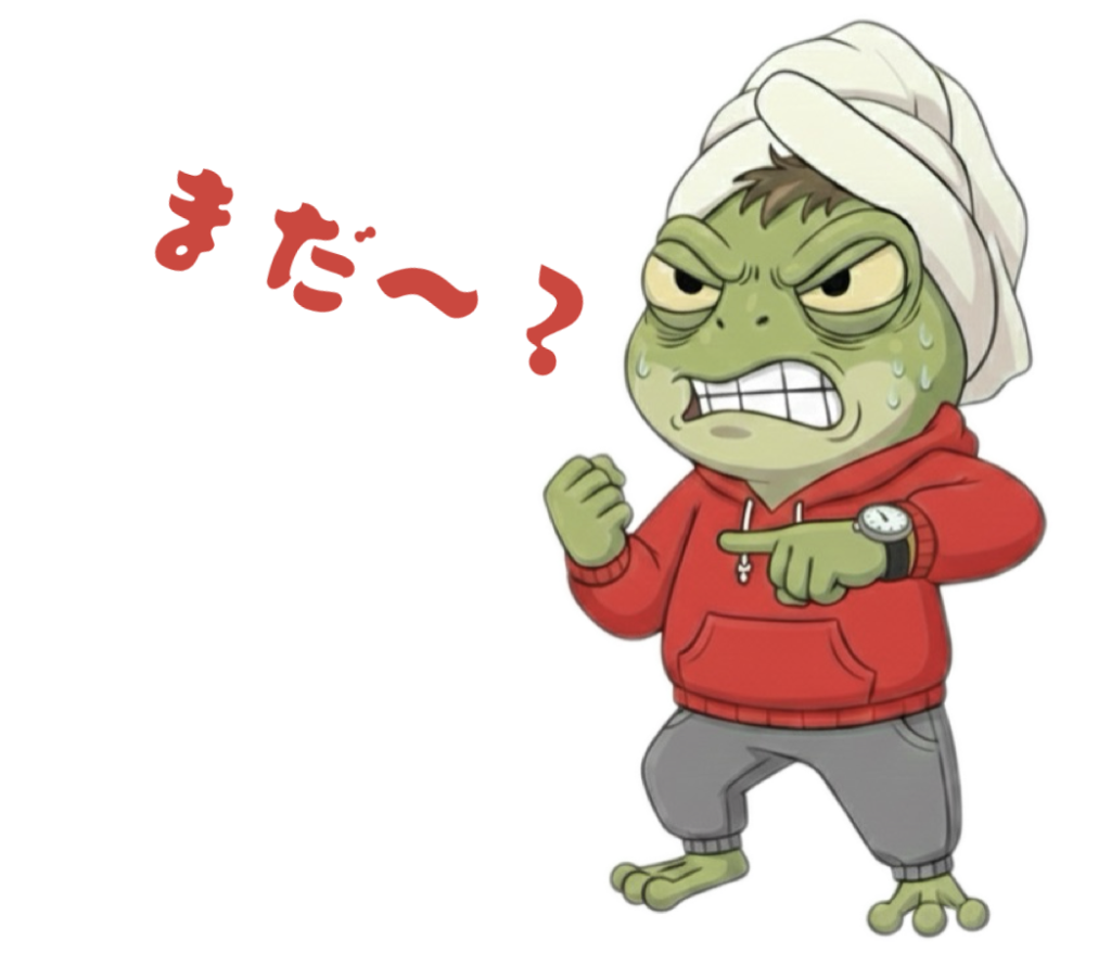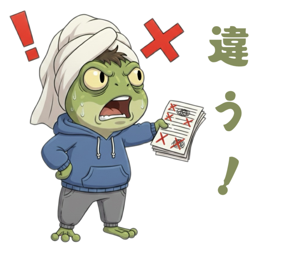 特に苦労したのは、「マジかよ!」とニヤついている表情の絶妙な塩梅です。怒りを通り越して笑えてくる、あの独特の心理状態をカエルで表現するために、何度も何度も目元のシワを描き直しました。